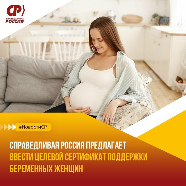 СПРАВЕДЛИВАЯ РОССИЯ предлагает ввести сертификат поддержки беременных женщин для оплаты расходов на медицинские услуги и лекарства с момента постановки на учет в женской консультации, то есть с самых ранних сроков беременности. Обычно расходы в семьях начинаются уже на первых месяцах беременности, а пособие будущим мамам предоставляется с 28-й или 30-й недели вынашивания ребенка, хотя потребность в деньгах возникает гораздо раньше. Специальный сертификат, который предлагает ввести наша партия, должен иметь строго целевое назначение. Это обеспечит понятное и прозрачное расходование средств, снизит финансовую нагрузку на семьи и повысит доступность медицинской помощи во время беременности. Условием для его предоставления может стать постановка беременной женщины на учет.