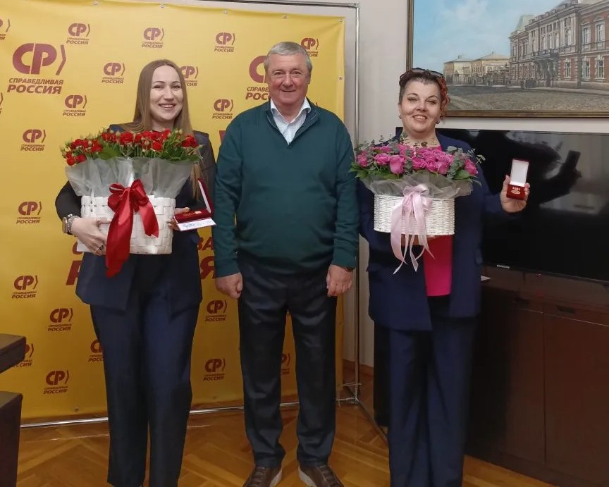 Руководитель СПРАВЕДЛИВОЙ РОССИИ в Ставропольском крае Александр Кузьмин наградил партийными медалями "Служение и Доблесть" двух наших замечательных активисток. Виктория Занько – вдова гвардии ефрейтора Олега Кожокара, героически погибшего 26 февраля 2022 года в бою в городе Новая Каховка Херсонской области. На протяжении длительного времени Виктория Игоревна принимает активное участие в волонтерской деятельности, направленной на поддержку военнослужащих, выполняющих задачи в зоне специальной военной операции. Нина Полякова с начала проведения СВО заняла активную гражданскую позицию и стала одним из лидеров благотворительной деятельности в крае. Она организовала сбор гуманитарной помощи, изготовление, закупку и отправку необходимых вещей, продуктов для наших военных. Кроме того, Нина Васильевна организовала 12 фотопроектов, ставших сегодня патриотическим движением под названием "Жены Героев". Политик тепло поздравил смелых женщин с заслуженными наградами.